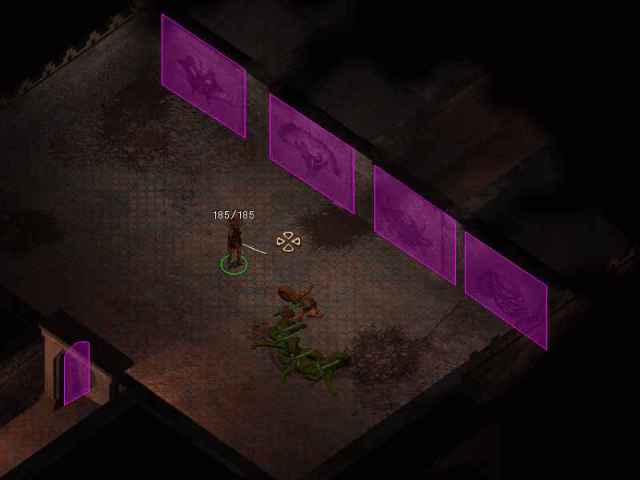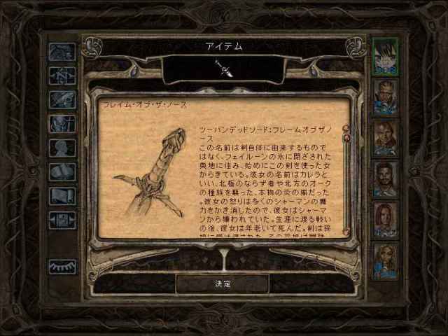 マインド・フレイヤーの壁にマインド・フレイヤーの油絵を使うことで予想通り扉が開きます。扉の向こうにはマインド・フレイヤーが居て、そのマインド・フレイヤーを倒すとフレイム・オブ・ザ・ノースという両手剣を落としました。これは10%のマジックレジスタンスが得られる+2相当の両手剣で、カオティックイービルの敵が相手の時は+4の追加ダメージを与えるそうです。敵の属性なんていちいち気にしたことないけど、大部分がカオティックイービルなのでは?