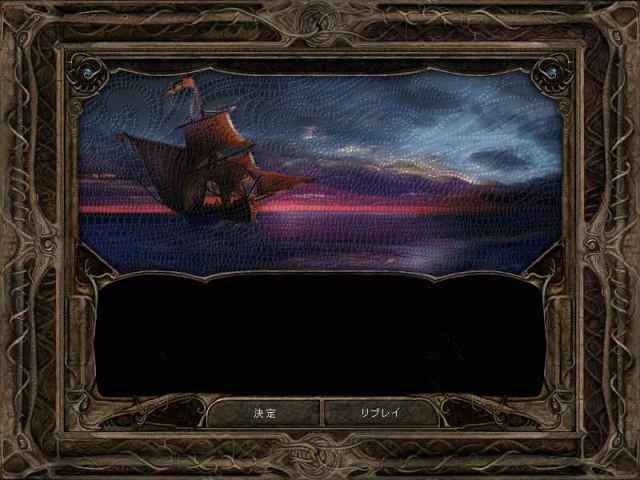 海は凪いでいるが、航海は緊張を強いられる。サエモンはほとんど船室に籠もっている。まるで、何か悲劇が起こるが、あなたを避けていればその影響を受けずに済むと思っているかのような振舞いだ。ともかくも、サエモンが決めた航路は適切で、数日中に大陸に着きそうだ。4日後の朝、東の方角に船が見えると、サエモンは震えながら船の向きを変えるように指示した。だが、向かい風に阻まれているうちに、当の船は着実に、物凄い速さで近付いてくる。サエモンはだんだん神経質になったが、それももっともだった・・・その船は様子がおかしく、水に浸かっているようには見えないのだ。船は追いつき、こちらに横付けして、見たこともない乗組員が姿を見せた。サエモンは皆に武器を取って構えるように命じた・・・